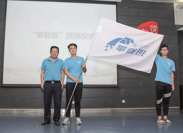 会上,陈新为“攀登班”班授班旗。“攀登班”,旨在打造学校创新创业的黄埔班,营造浓厚“双创”文化氛围,引领带动广大学生不断创新攀登。张学理为获得2017年广东大学生科技创新培育专项资金项目立项的重点项目负责人颁发培育专项资金。党委组织部、校长办公室、科技处、学生处等部门负责人为第三届中国“互联网+”广东省决赛优秀志愿者颁奖。