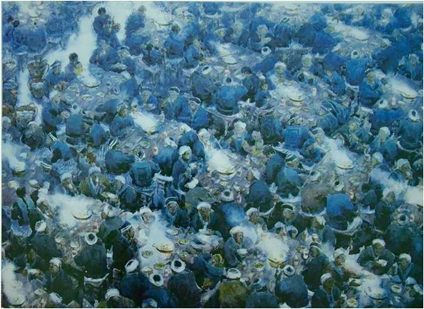 《瑶寨喜酒》,水彩,108X78cm