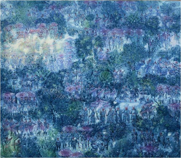 《瑶寨正月》,水彩,160X150cm