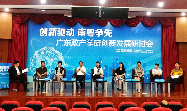 校长陈新应邀出席研讨会,围绕“如何破解大学科研与产业‘两张皮’难题”阐述了自己的看法。他认为,广工大的生命线是必须融入广东的发展。学校坚持“与广东崛起共成长 为广东发展作贡献”的办学理念,在深入对接广东方面做了大量工作。首先在专业调整上,围绕广东产业需求调整专业设置,使学校专业设置与产业紧密对接。在产学研上,要瞄准高端技术需求,为企业、区域注入创新的基因和活力。产学研目前还存在两个认识误区:一是认为跟企业合作的项目就一定是低水平的项目,就一定是没有学术味道的项目。其实,在广东转型升级过程中有很多企业对高端技术的需求是非常渴望的。应从这方面挖掘高端、培养高端,一定会出现“明珠性”的项目;二是认为做一个产学研留下一个产品就是一个优秀的产品了,产学研一定是要为企业、为区域提供造血功能,这才是真正的产学研,这是产学研的精髓所在。要通过跟地区、企业进行长期捆绑,不仅解决它现在的问题,还要解决它未来的问题,不仅用我们的力量为他们服务,还要集成国际国内更多高端力量为他们服务,为他们提供造血服务,这才是高境界的产学研。陈新认为,要在机制体制上切实破解过去传统的做法,包括学术评价机制、学生培养机制,这需要进一步做更深层次的改革。