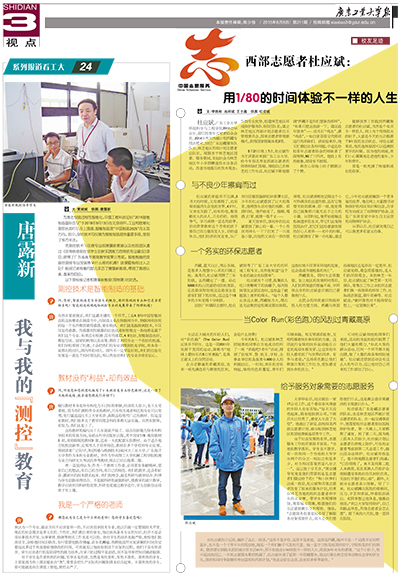 【校友足迹】《西部志愿者杜应斌:用1/80的时间体验不一样的人生》 3版