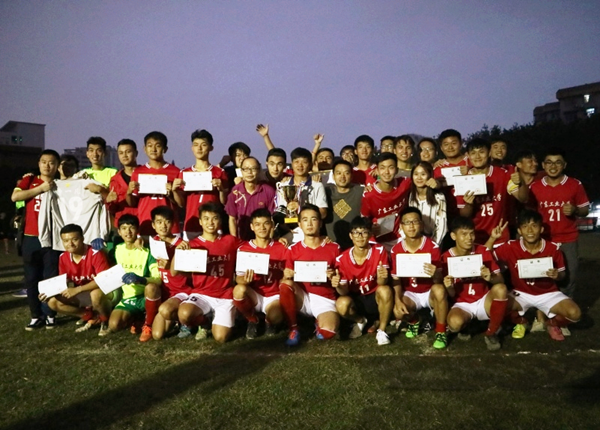 本网讯 2017年广东省“省长杯”足球联赛(大学组)甲A组比赛于11月9日开赛。在接连六天的小组循环赛和淘汰赛中,我校足球队(甲组)在全体领导、教练和队员努力下,发扬拼搏奋斗的广工精神,连胜五场,一举拿下广东省“省长杯”甲A组冠军,时隔五年,重回巅峰。决赛后,我校足球队(甲组)主教练张勇军获得“优秀教练员”称号,队员谭立云获得“优秀运动员”称号。