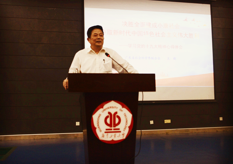 学校党委副书记陈良友、副校长陈为民,党委宣传部、研究生院、学生处、科技处(人文社科处)相关负责人及党员代表,广工大社会科学界联合会成员,各文科单位科研副院长、科研秘书及有意向申报2018年国家社科基金和教育部人文社科项目的教师,学生骨干代表等参加了会议。整场报告主题鲜明、风趣幽默,系统地阐释了党的十九大精神,使我校师生受益匪浅。