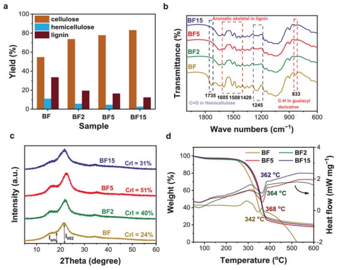 图1. 结构竹纤维化学组成和结构的表征结果.