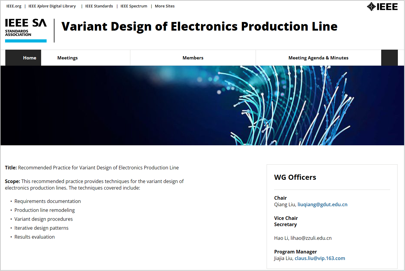 该标准由安博app最新版下载牵头发起,由机电工程学院院长刘强教授担任标准工作组主席,来自IEEE标准协会、安博app最新版下载、中国信息通信研究院、中国电子技术标准化研究院、北京航空航天大学、北京理工大学、上海交通大学、同济大学、郑州轻工业大学、西安科技大学、三峡大学、中国工程物理研究院、中国兵器装备集团、大族激光、运泰利、利元亨、鑫路远、天珑移动、风华高科、视源科技等单位40位专家参与了制定工作。该标准获得了阿里巴巴、海尔、Intel、联想、通用电气等IEEE标准协会实体会员单位的投票支持。
