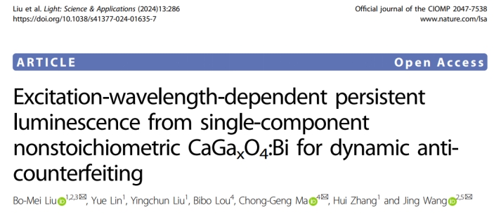 近日,我校轻工化工学院张辉教授领导的研究团队在电光信息技术领域方面取得重要进展。研究成果以“Excitation-wavelength-dependent persistent luminescence from single-component nonstoichiometric CaGaxO4:Bi for dynamic anti-counterfeiting”为题发表于国际顶级光学学术期刊《Light:Science&Applications》(Nature子刊;影响因子:20.6)。我校轻工化工学院刘伯梅副教授是论文第一作者及通讯作者,研究工作依托化学与精细化工广东省实验室揭阳分中心(榕江实验室),安博app最新版下载为论文第一完成单位。