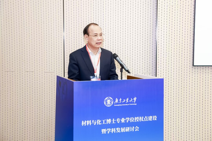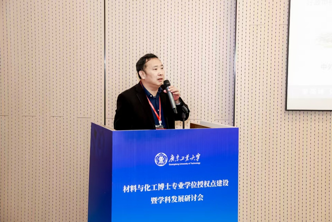 邱学青在会议开幕式上致辞,热烈欢迎各位专家莅临我校指导专业博士点建设。邱校长用“大、实、特、快”四个字概括了学校的发展情况,并表示2024年是我校发展史上具有里程碑意义的一年,学校在学科建设等多方面取得了质的飞跃,新增了7个博士点,位列全国第七、广东省属高校第一,实现了理工学科专业学位博士点的全覆盖,获批设计学一级学科博士点,实现了交叉学科博士点零的突破。他指出,材料与化工博士专业学位授权点的建设,不仅是我校博士学位授权体系的重要一环,更是响应国家战略、推动化工学科向绿色化、高端化发展的重要举措。他表示,希望通过此次研讨会,与专家们深入交流,共同谋划学科发展的战略布局,凝练学科方向,明确未来发展思路,并希望借此机会加强与各位专家的合作,为大湾区绿色创新发展贡献力量。