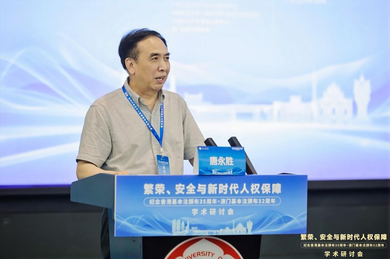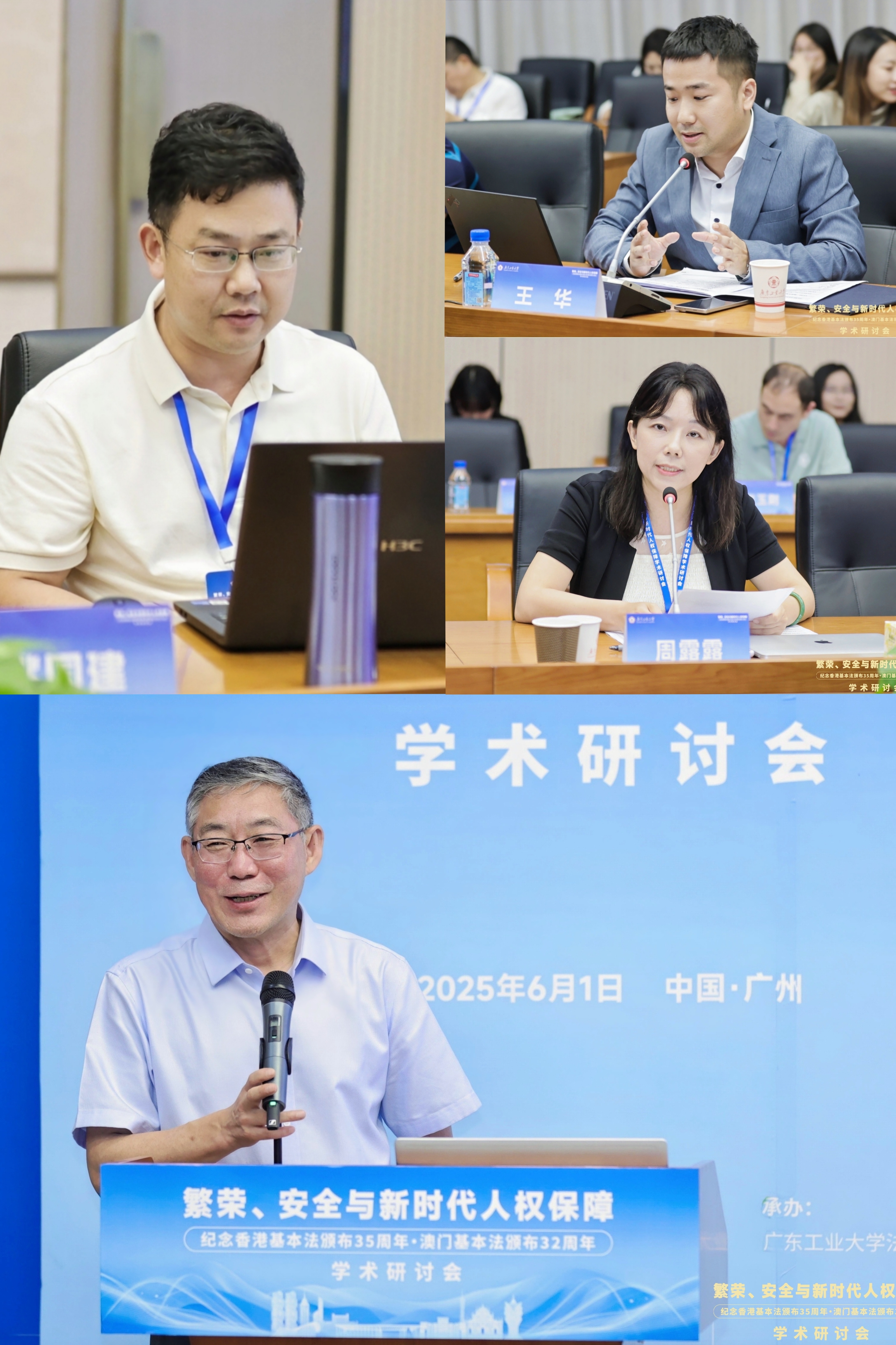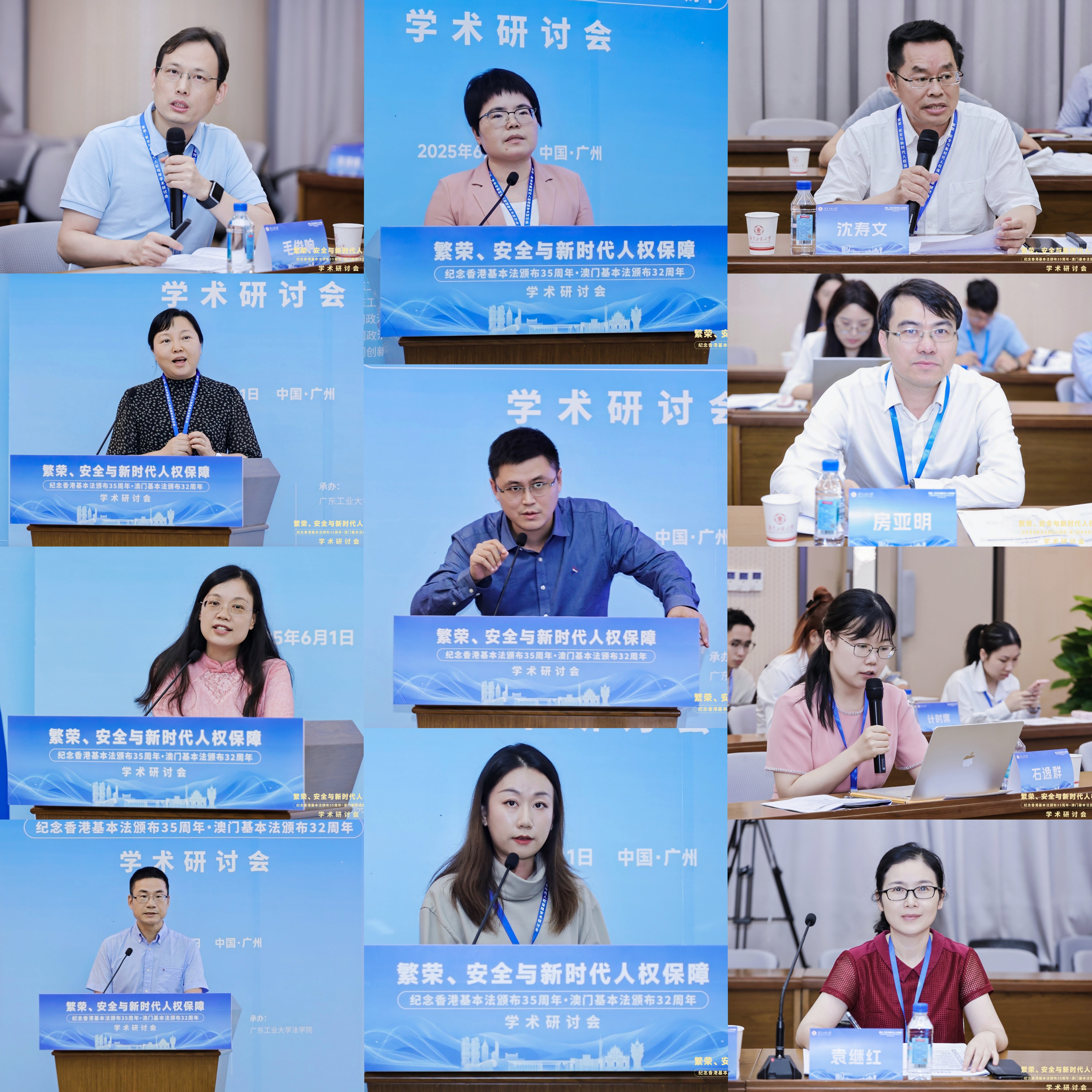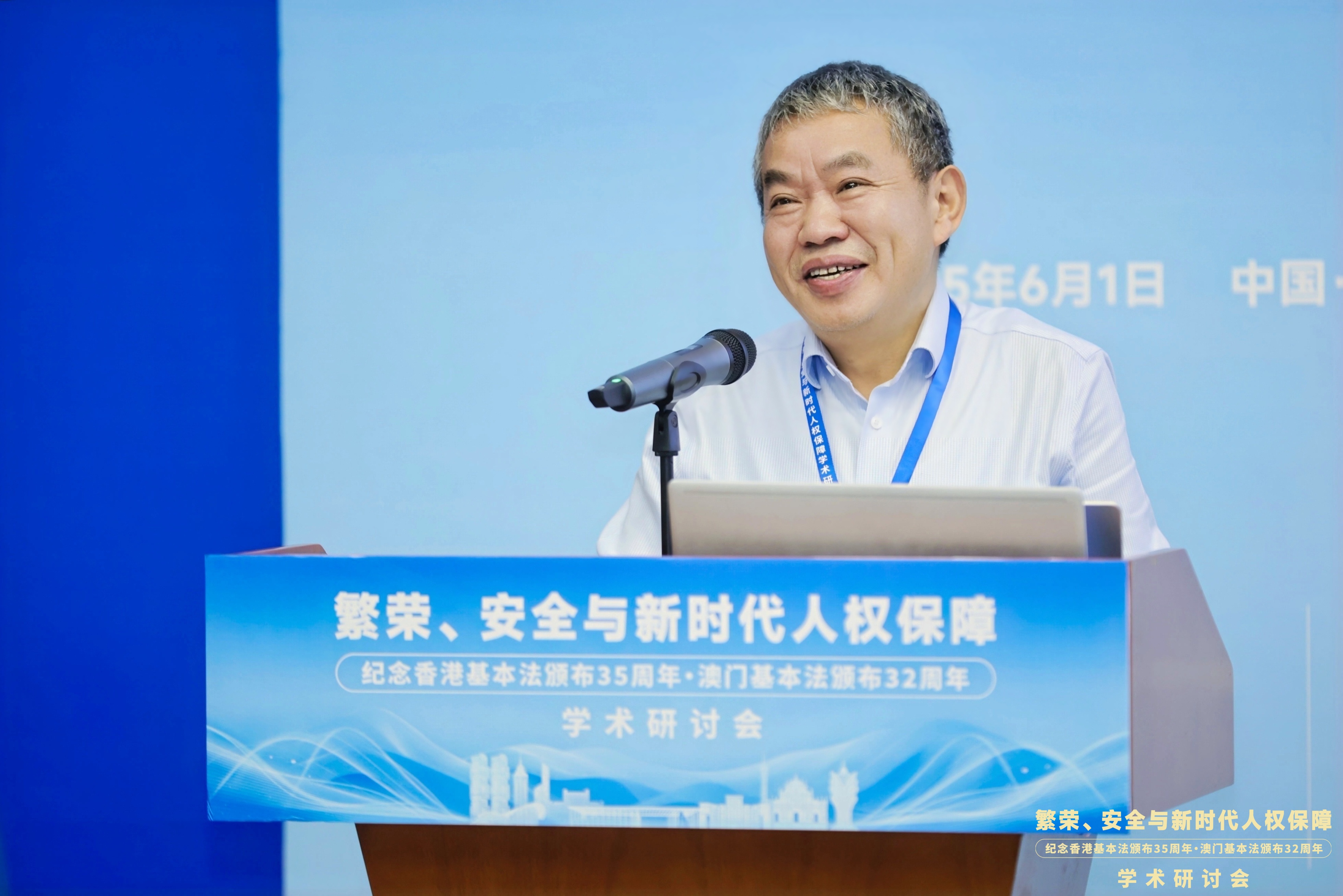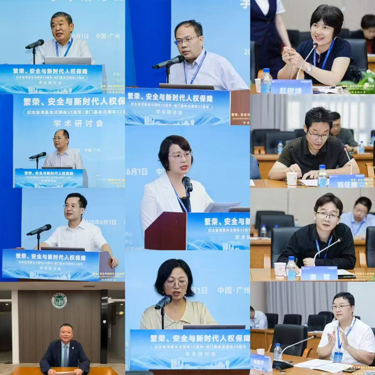 6月1日,“繁荣、安全与新时代人权保障——纪念香港基本法颁布35周年、澳门基本法颁布32周年学术研讨会”在广东广州隆重举行。此次研讨会由安博app最新版下载国家安全研究中心、安博app最新版下载人权法治研究中心、中国政法大学人权研究院(当代法治研究院)、中国政法大学港澳台教育中心以及澳门创新发展智库联合主办,由安博app最新版下载法学院承办。来自国防大学、中国人民大学、中国社会科学院、吉林大学、中南大学、北京理工大学、中央民族大学、中南财经政法大学、华东政法大学、西南政法大学、云南大学、昆明理工大学、贵州财经大学、香港大学、香港城市大学、澳门大学、澳门城市大学、华南理工大学、暨南大学、深圳大学、广东外语外贸大学、广东财经大学、广州大学、肇庆学院、濠江法律学社、香港政策研究所等内地及港澳知名高校、研究机构的超过80位专家学者齐聚一堂,围绕国家安全法治、人权保障实践、粤港澳大湾区区域协同治理等核心议题展开深入研讨。