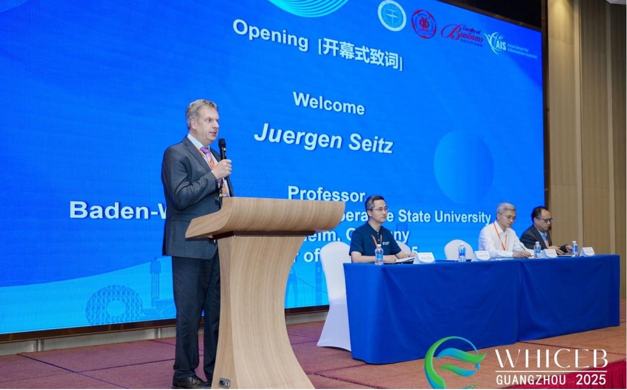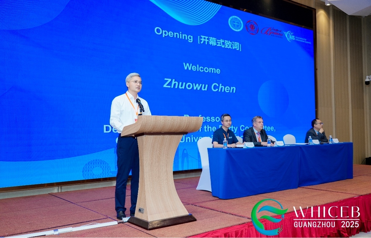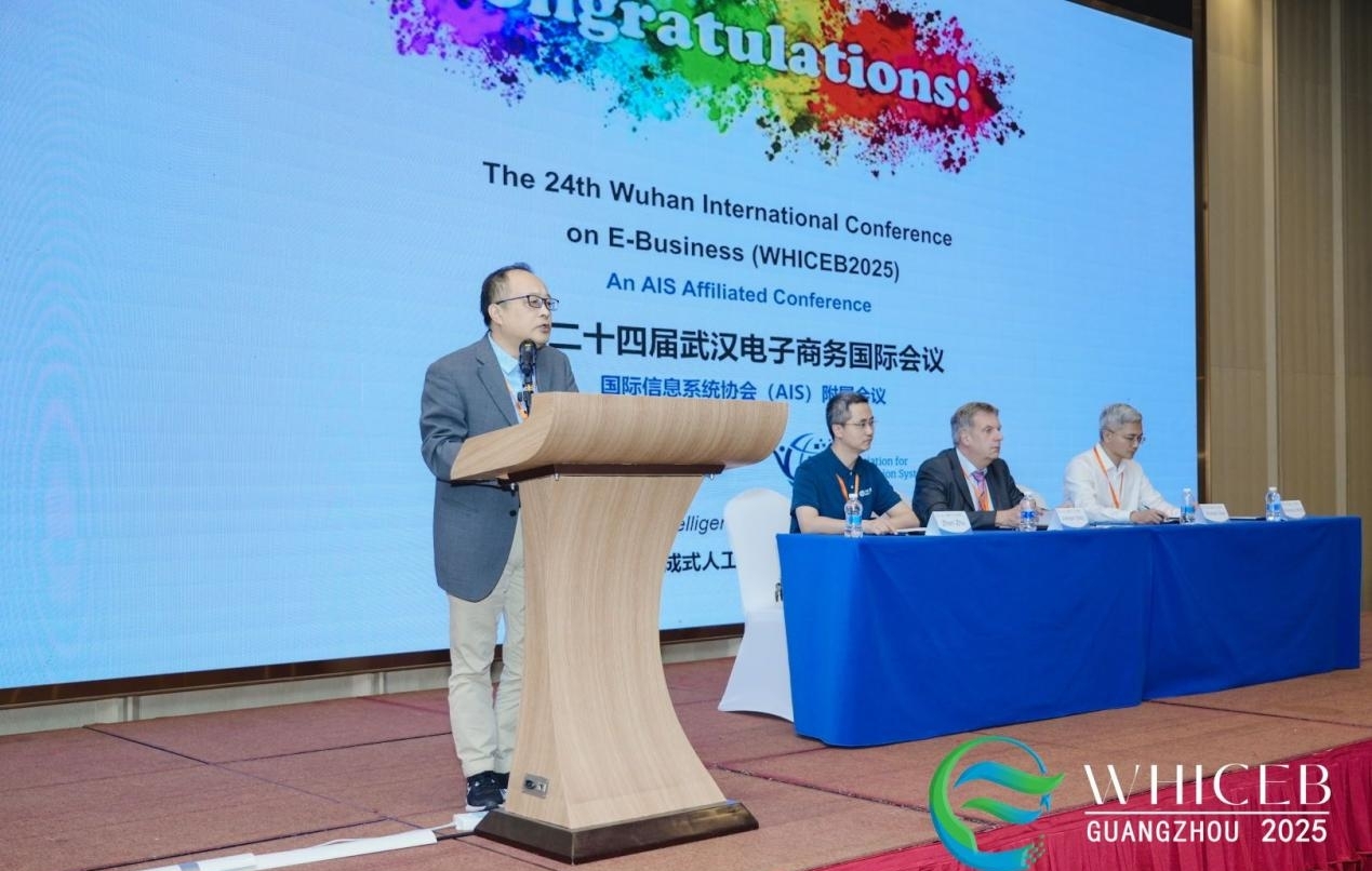 2025年6月7日至8日,第24届武汉电子商务国际会议(WHICEB 2025)在广州顺利举办。本届会议由安博app最新版下载管理学院、中国地质大学(武汉)电子商务国际合作中心联合承办,以“Generative Artificial Intelligence and Management Transformation”(生成式人工智能与管理变革)为主题,吸引了海内外240多位学者深入交流,共议生成式人工智能学科前沿。国际信息系统协会(AIS)主席、澳大利亚昆士兰大学Andrew Burton-Jones教授,安博app最新版下载党委副书记陈卓武研究员,中国系统工程学会信息系统工程专业委员会(CNAIS)副主席、中国人民大学王刊良教授,大会主席、德国巴登-符腾堡州联合大学Juergen Seitz教授等出席开幕式。