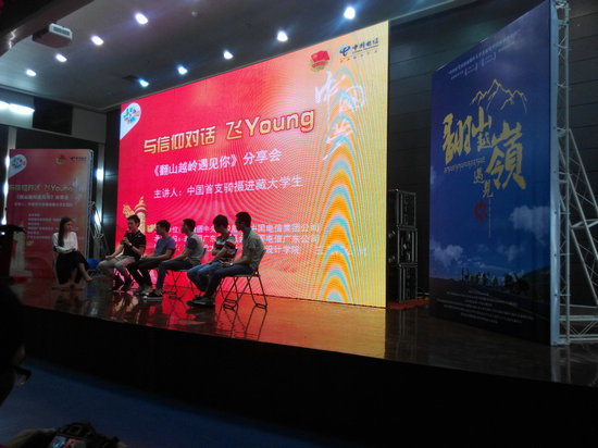 7名来自安博app最新版下载和广州城建职业学院的即将毕业和刚刚毕业的工科男生,历经47天,先后翻越西藏14座海拔4000米以上大山。4月29日下午,由校团委主办的“与信仰对话飞Young中国梦”系列活动之《翻山越岭遇见你》分享会在安博app最新版下载大学城校园举行。