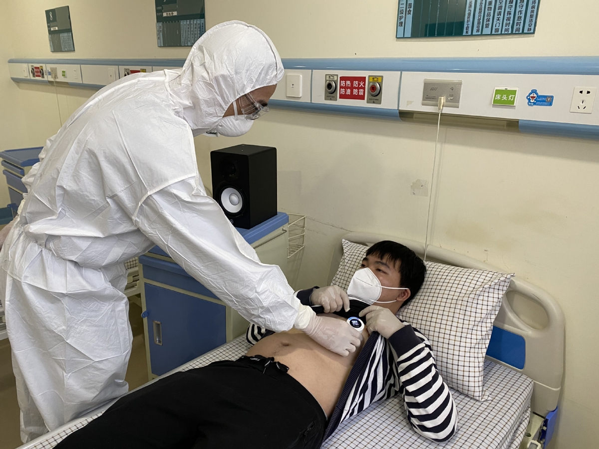 Yang Zhengfei, a doctor at the hospital's emergency and critical care laboratory said the intelligent stethoscope helps avoid the spread of infections by contact.
