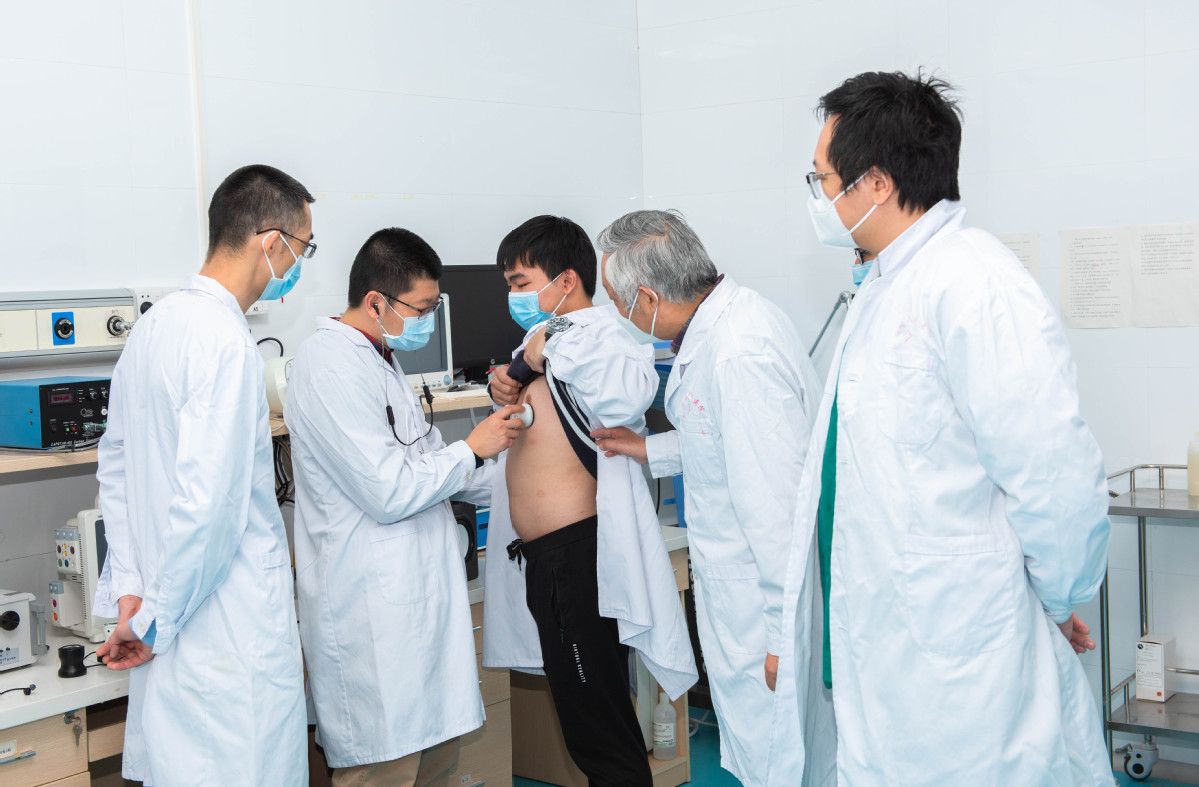 A doctor uses an intelligent stethoscope to evaluate a patient. [Photo provided to chinadaily.com.cn]