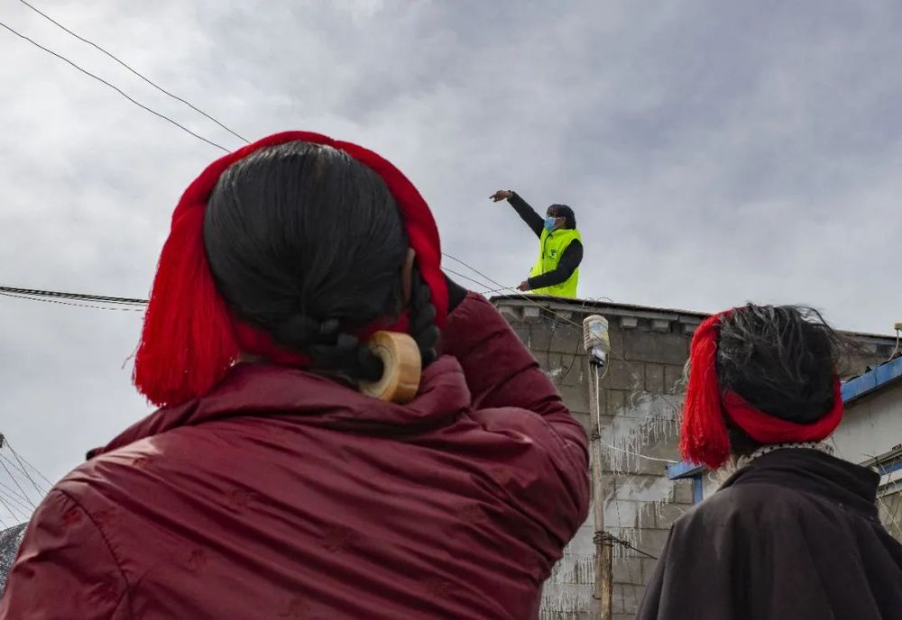 3月6日,一电信局技术人员拉网布线,西藏为牧区学生上网课保驾护航 普布扎西 摄