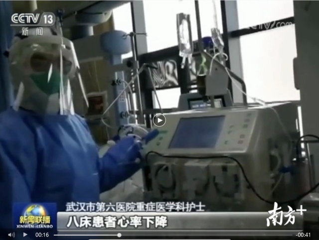 “8床患者心率下降,ST段抬高,快叫医生!”在武汉市第六医院重症监护科,护士不用进入隔离区内,就能通过心电图机及时掌握新冠肺炎患者心率情况,高效又安全。