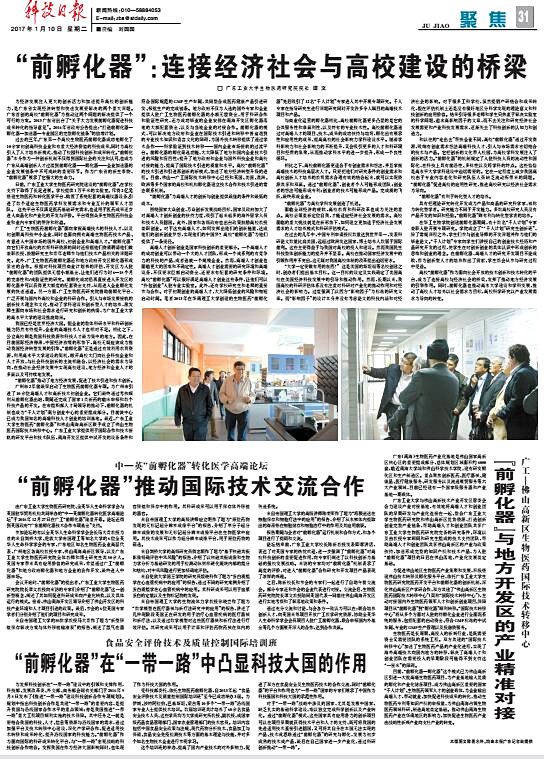 为促进佛山地区生物医药产业集聚和发展,积极搭建佛山技术转移及孵化服务平台,依托安博app最新版下载生物医药研究院医药开发平台和前孵化器的创新机制,深化佛山高新区产学研合作,双方共建了“佛山高新区生物医药国际技术转移中心”(简称“国际技术转移中心”),主动对接国内外生物医药人才和创新创业项目,保障项目从“前孵化器”到“孵化器”顺利转移。“国际技术转移中心”将从多个方面对入驻的待孵化企业进行全面而系统的服务,包括配套的启动资金、符合GMP标准的中试车间、专业的GMP生产管理以及投融资服务。