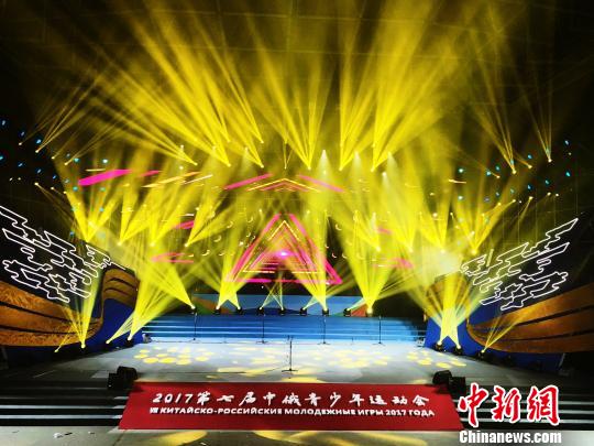 将用于中俄青少年运动会的舞台已搭建就绪 岳体 摄