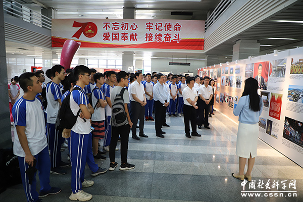 陈新表示,学校举办这次展览,除了组织广大党员和师生观展,也组织教师在展览现场给学生上新中国史教学课,让学生走出教室,在观展中面对一幅幅珍贵的历史照片,聆听老师们关于新中国成立70年来的光辉历程、伟大成就、宝贵经验的讲解,课程更直观、更生动。让师生在观展中、在教学课堂中加强爱国主义教育,弘扬爱国主义精神,更好地学习党史、新中国史,更好地知史爱党、知史爱国。