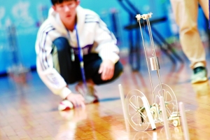“小车需要识别路桩,还要绕过路桩,以S形轨迹跑完赛道”,现场裁判告诉记者,参赛小车需从起点出发,绕过路桩才能得分。昨日早上的比赛中,仅有7队学生参赛,而完成S赛道的队伍仅有一队。