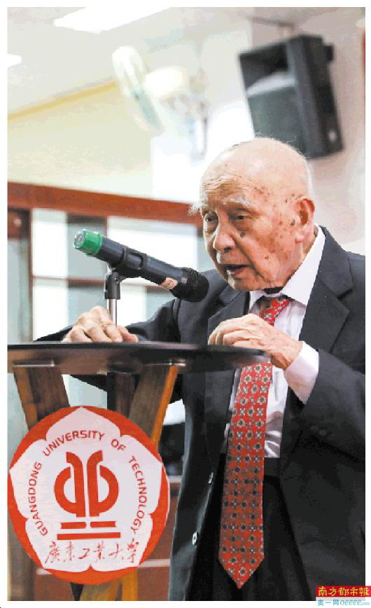 黎鑫老教授今年96岁,一头白发,背有些驼,但精神矍铄,嗓音宏亮。颁发仪式上,老教授全程站立半小时许。