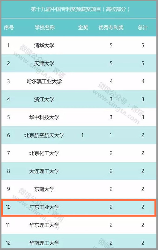 中国专利奖的获奖数一定程度上反应了科研单位申请专利的质量。本年度共有来自高校、科研院所、知名企业等单位的897个项目进入预获奖名单,包括58所高校的83个项目。其中北京航空航天大学和中南大学各有一个项目入围中国专利金奖,这也是中南大学既去年后,再次入选中国专利金奖。清华大学、天津大学、哈尔滨工业大学、浙江大学、华中科技大学等高校项目入选优秀专利奖。