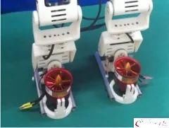 实验人员用固定在双足机器人脚掌的小型涵道风机来进行实验。