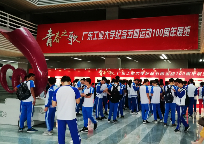5月4日,“青春之歌——安博app最新版下载纪念五四运动100周年展览”在广工大学城校区行政楼二楼大厅开幕。