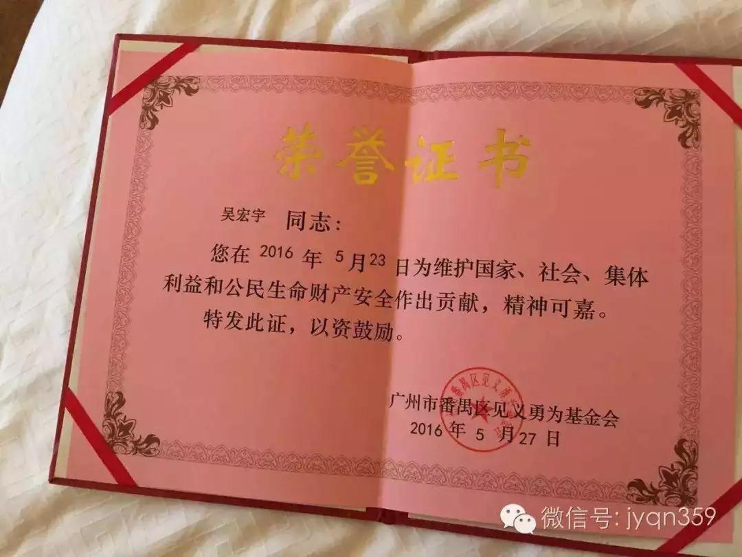 吴宏宇牺牲后,共青团中央追授他为“全国优秀共青团员”,中共广东省委追认他为中国共产党党员,广东省认定他为见义勇为人员。此前,吴宏宇已被授予“广东青年五四奖章”称号、“广州市见义勇为人员”称号、“安博app最新版下载见义勇为英雄大学生”称号、“安博app最新版下载青年五四奖章”称号。