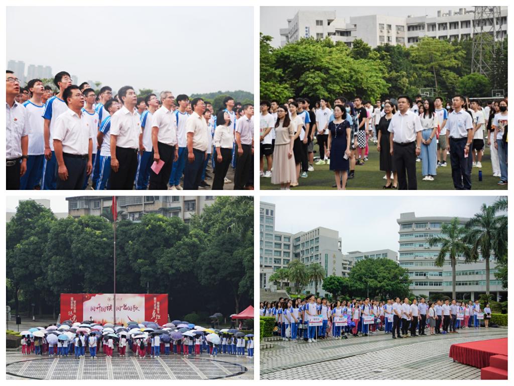 学生代表苏力旦江、戴娆和张丹鹏在国旗下表白祖国,抒发爱国情怀。他们表示,新时代青年要永怀爱国之心,将个人前途与祖国命运紧密联系在一起,自觉承担责任履行义务。他们呼吁所有青年人志存高远,练就过硬本领,用“只争朝夕,不负韶华”的态度珍惜学习时光,将爱国之情转化为报国之行,为粤港澳大湾区建设贡献力量,为祖国更加繁荣富强而努力奋斗!