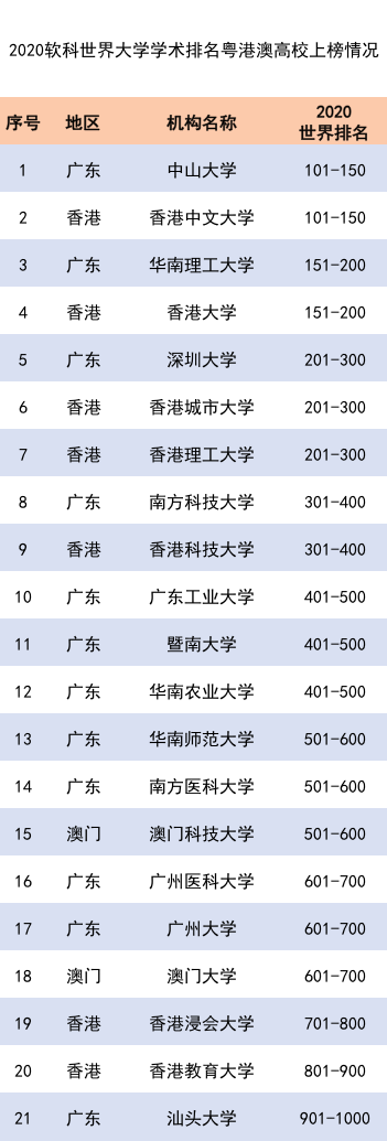 南方教育智库第一时间独家获悉,粤港澳大湾区共有21所高校入选,其中,中山大学、香港中文大学均排名世界101-150位,为粤港澳大湾区2所“头部高校”,安博app最新版下载、华南农业大学则首次跻身全球500强,展现了快速发展的学术水平和国际影响力。
