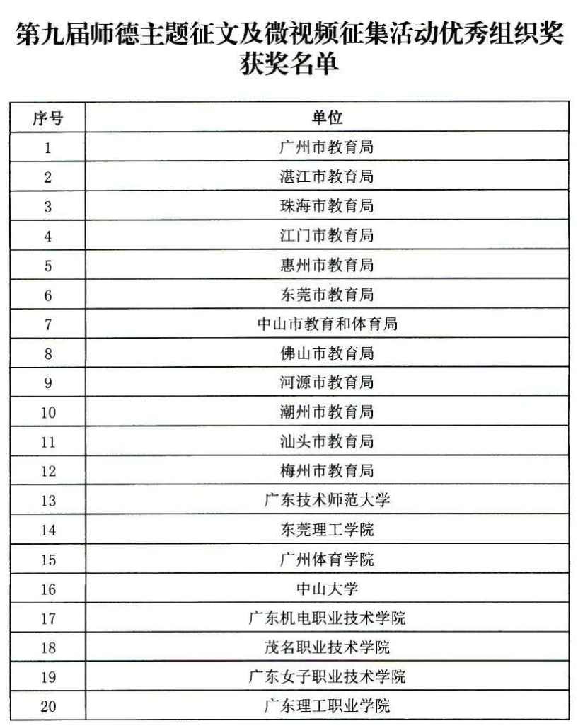 老师们看过来!广东省教育厅委托广东教育杂志社组织开展的“自觉爱国守法,潜心教书育人”第九届师德主题征文及微视频征集活动获奖名单正式公布啦!