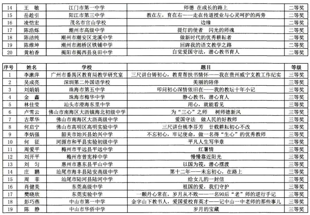 老师们看过来!广东省教育厅委托广东教育杂志社组织开展的“自觉爱国守法,潜心教书育人”第九届师德主题征文及微视频征集活动获奖名单正式公布啦!