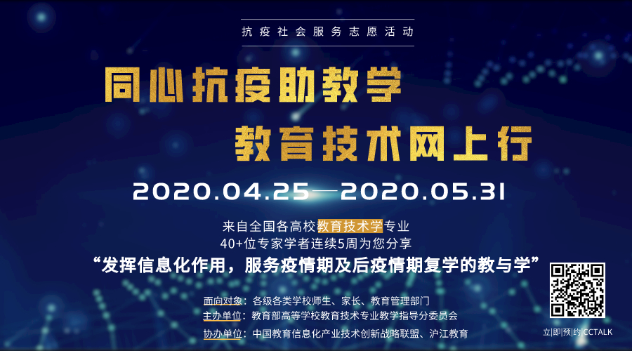近日,由教育部高等学校教育技术专业教学指导分委员会主办,中国教育信息化产业技术创新战略联盟、沪江教育联合协办、教指分委秘书长单位华南师范大学组织的“同心抗疫助教学,教育技术网上行”在线抗疫社会服务志愿活动顺利举行,为以上问题给出专业回答。