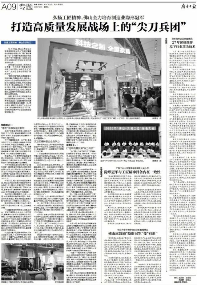 当前,佛山正不断优化营商环境、厚植发展沃土。越来越多具有强大市场地位和很高市场份额的冠军企业在此争相涌现,成为佛山高质量发展战场上骁勇善战的“尖刀兵团”。