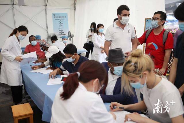“为保障外籍人士疫苗接种工作的有序开展,在接到通知后,我们迅速召集了英语较好的医务人员,安排在靠近门口的接种台,方便沟通。”广东省第二人民医院感染管理科副主任医师刘蕴婷介绍,“同时,我们还专门调配了英语水平较好的志愿者前来协助。”