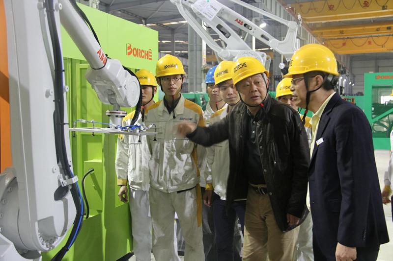 自动化学院学科带头人、国家自然科学奖二等奖第一完成人谢胜利教授指导学生实习(右二为谢胜利) 学校供图