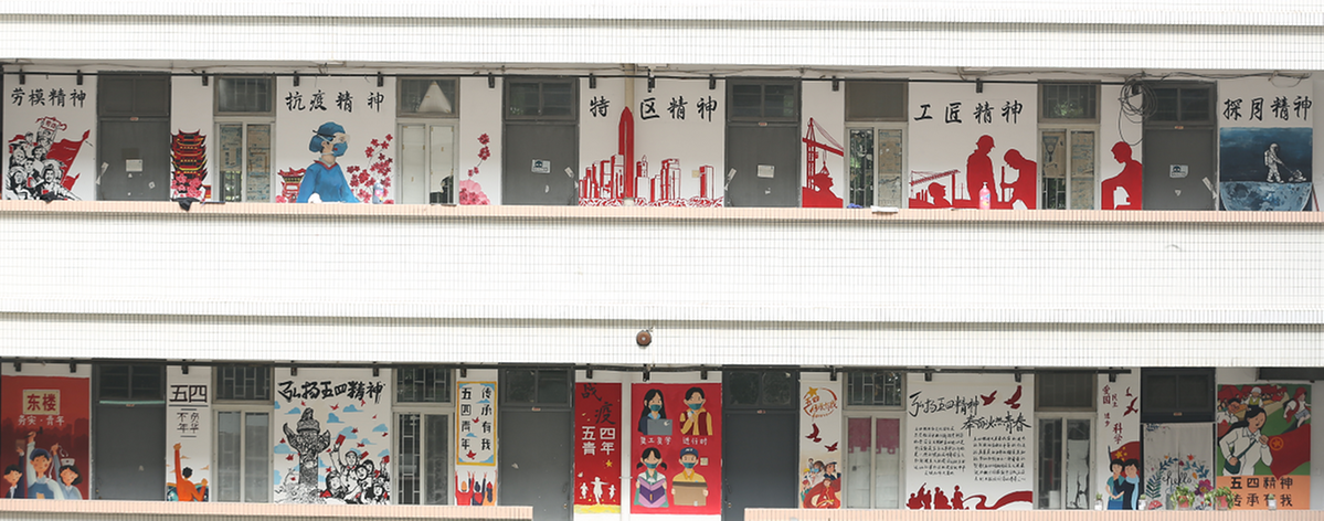 五四精神,传承有我。艺术与设计学院团委、学生会积极响应团中央“学党史、强信念、跟党走”的号召,不断丰富党史学习教育方式方法,在学党史、悟思想的过程中,通过了解广大爱国青年在祖国革命、建设、改革时期的先进事迹,选取了“务实青年”“战疫青年”“尚学青年”等元素,描绘出了国家广大青年弘扬五四精神、奉献火热青春的墙绘艺术作品。(中国日报社广东记者站)