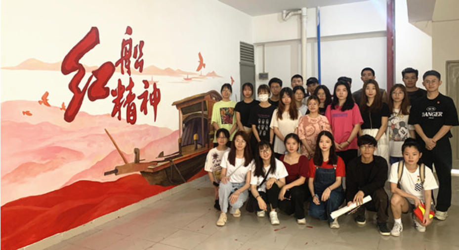 长征精神,代代相传(学生团队临摹自张文源油画《红军过草地》)以史为魂,以“绘”说史。美术系学生党支部用艺术之笔描绘党史开天辟地的大事件——中共一大,深刻领悟“红船精神”所代表的精神内涵和时代价值,决定将“南湖红船”这一鲜明的红色元素融入主题创作中,加入了“青山”“江水”“海鸟”等元素,采用透视的油画技法,历时两日连续奋战,绘出了“一艘红船从远方的江山图景之中劈波斩浪、坚毅驶来”的磅礴画面。学生党员全情投入,高年级带动低年级,接力作画,展现了学生党员良好的专业素养与党性修养。