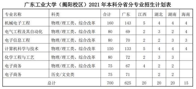 一是扩大招生规模。广工2021年招生总计划10200名,比2020年增加了700名。其中,广东省计划8757名,省外计划1183名,不分省计划260名。今年增加的700名计划,全部安排在广工揭阳校区(先进制造学院)机械电子工程、电气工程及其自动化、计算机科学与技术等6个广工强势专业进行招生。值得一提的是,这是揭阳校区首年招生,投放广东、江西、湖南、湖北、海南等5个省份。