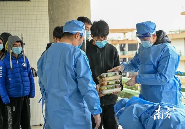 安博app最新版下载为被隔离学生送上一日三餐、姜汤、爱心水果等。