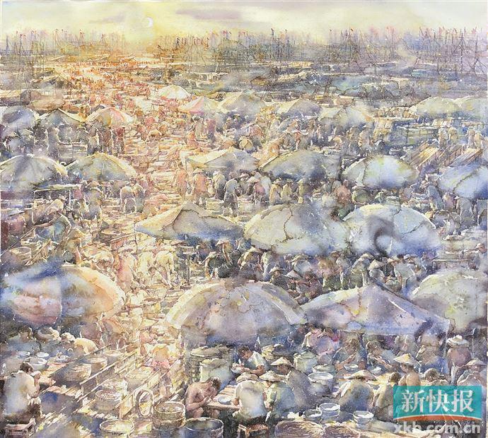张洪亮,《渔港的早晨》,水彩画,130X125cm,2020年