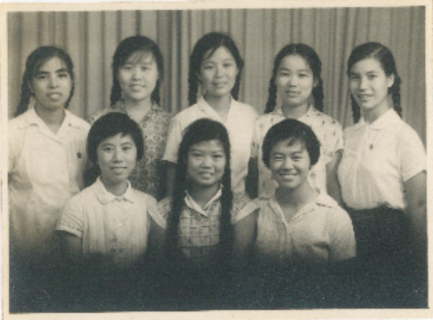 1962年毕业时班级女生合影,第一排右一为骆小筑