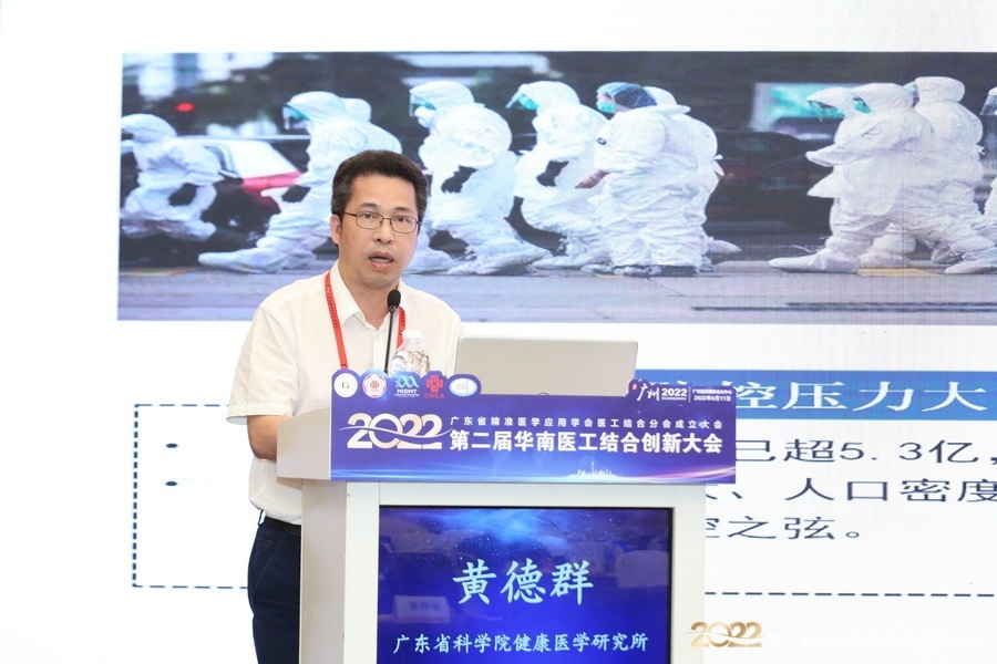 广东省科学院生物与医学工程研究所工程化验证部主任黄德群主任介绍了医疗器械产业技术的发展背景、医疗器械行业的特点、医疗器械创新转化共性技术要求等现状。