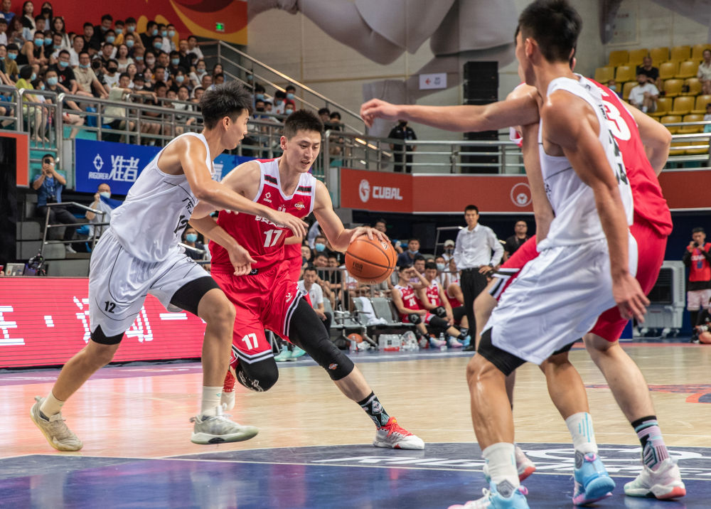 7月30日,安博app最新版下载队球员刘康能(中)在比赛中突破。新华社记者 黄伟 摄