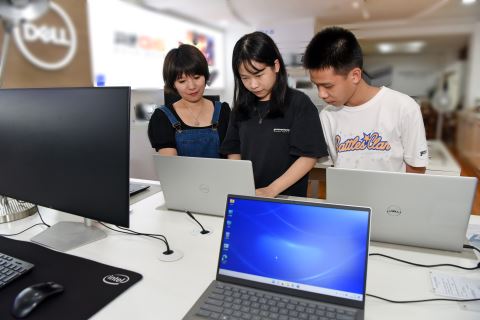 “准大学生”们在假期购置电脑、手机等数码产品,为入学做好准备。林洁松 摄