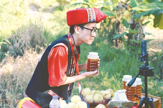 下乡实践的活动丰富多样,除了关爱特殊群体,还有一群大学生致力于用“数字技术”为农村发展奉献萤火之力。“非常激动,点赞数破十万了!”来自广东外语外贸大学“寻迹三下乡”队伍的刘耀庭和村民一同笑着。烈日下历经两小时的直播,刘耀庭为瑶族村售卖了逾500斤的特色农产品。