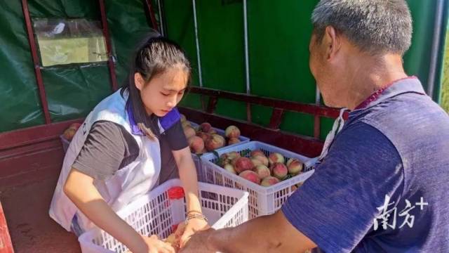 “看到桃,我想到了桃花流水鳜鱼肥、人面桃花相映红这些诗句。”“大家看我身后硕果累累的桃子树,我们现在摘下来尝一口。”……广工实践团的师生们加入了三桥村电商直播间。学生黄东楷介绍,6名团队成员顺利完成时长2小时的直播,直播点击量超3000次、点赞量5000余次,售出约150斤桃子,取得了不错的直播效果。