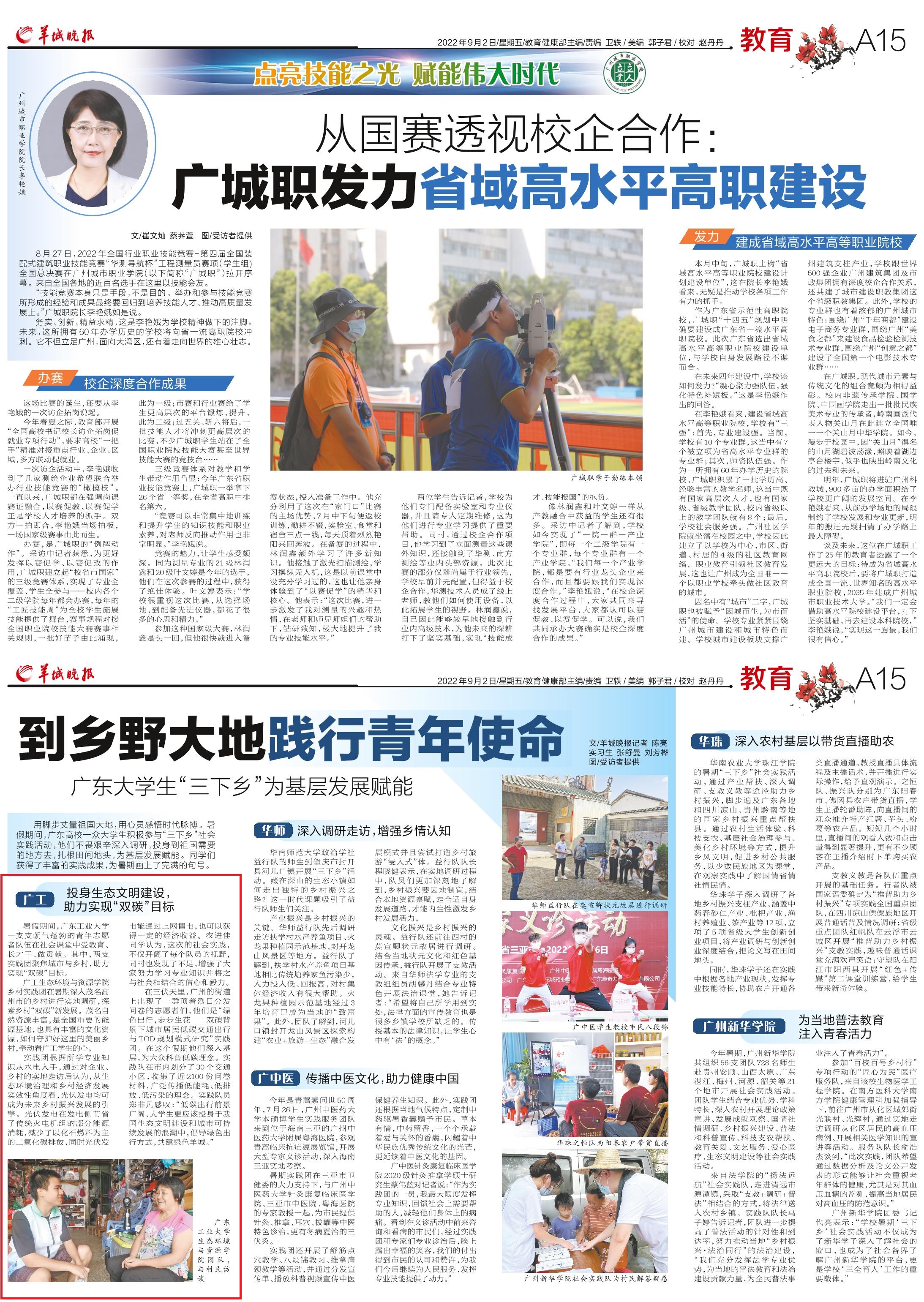 用脚步丈量祖国大地,用心灵感悟时代脉搏。暑假期间,广东高校一众大学生积极参与“三下乡”社会实践活动,他们不畏艰辛深入调研,投身到祖国需要的地方去,扎根田间地头,为基层发展赋能。同学们获得了丰富的实践成果,为暑期画上了完满的句号。