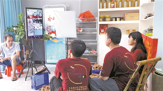 同时,华珠学子还在实践中根据各地产业现状,发挥专业技能特长,协助农户开通各类直播通道,教授直播具体流程及主播话术,并开播进行实际操作,给予直观演示。之恒队、振兴队分别为广东阳春市、佛冈县农户带货直播,学生主播轮番助阵,向直播间的观众推介特产红薯、芋头、粉葛等农产品。短短几个小时里,直播间的观看人数和点击量得到显著提升,更有不少顾客在主播介绍时下单购买农产品。
