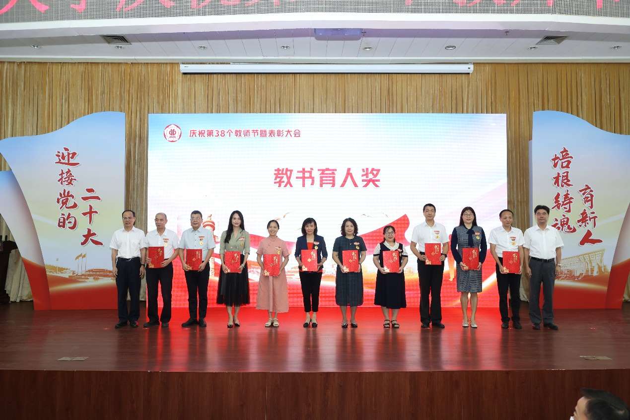 据悉,为大力弘扬尊师重教传统,强化身边榜样的引领感召,学校设立“教书育人奖”和“忠诚服务奖”两个奖项。获奖老师中,有的言传身教,是学生最喜爱的教师;有的引领学生勇攀高峰,感受科技的魅力;有的坚守教学一线,引导学生感悟知识的力量;有的几十年如一日,恪尽职守,真诚服务师生,充分展示了学校教师队伍有理想信念、有道德情操、有扎实学识、有仁爱之心的良好精神风貌。
