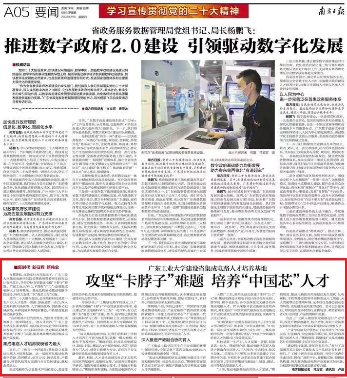 一年多以前,广工集成电路学院成立,以广东省集成电路“卡脖子”产业发展急需为牵引,重点建设“集成电路科学与工程”一级学科,有力支撑广东“强芯工程”实施。如今,该学院已获批集成电路科学与工程一级学科硕士点,获批国家首批现代产业学院。同时拥有60多位专职教师、约1500名学生,是广东省集成电路人才培养规模最大的学院。